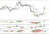 Há duas barras vermelhas abaixo da linha zero no indicador AC. Este sinal merece atenção, pois mostra uma diminuição na energia do movimento de alta. No entanto, o movimento de alta prevalece enquanto o preço permanecer acima da linha vermelha do Alligator. Após a correção ser concluída, o preço pode retomar seu movimento de baixa.