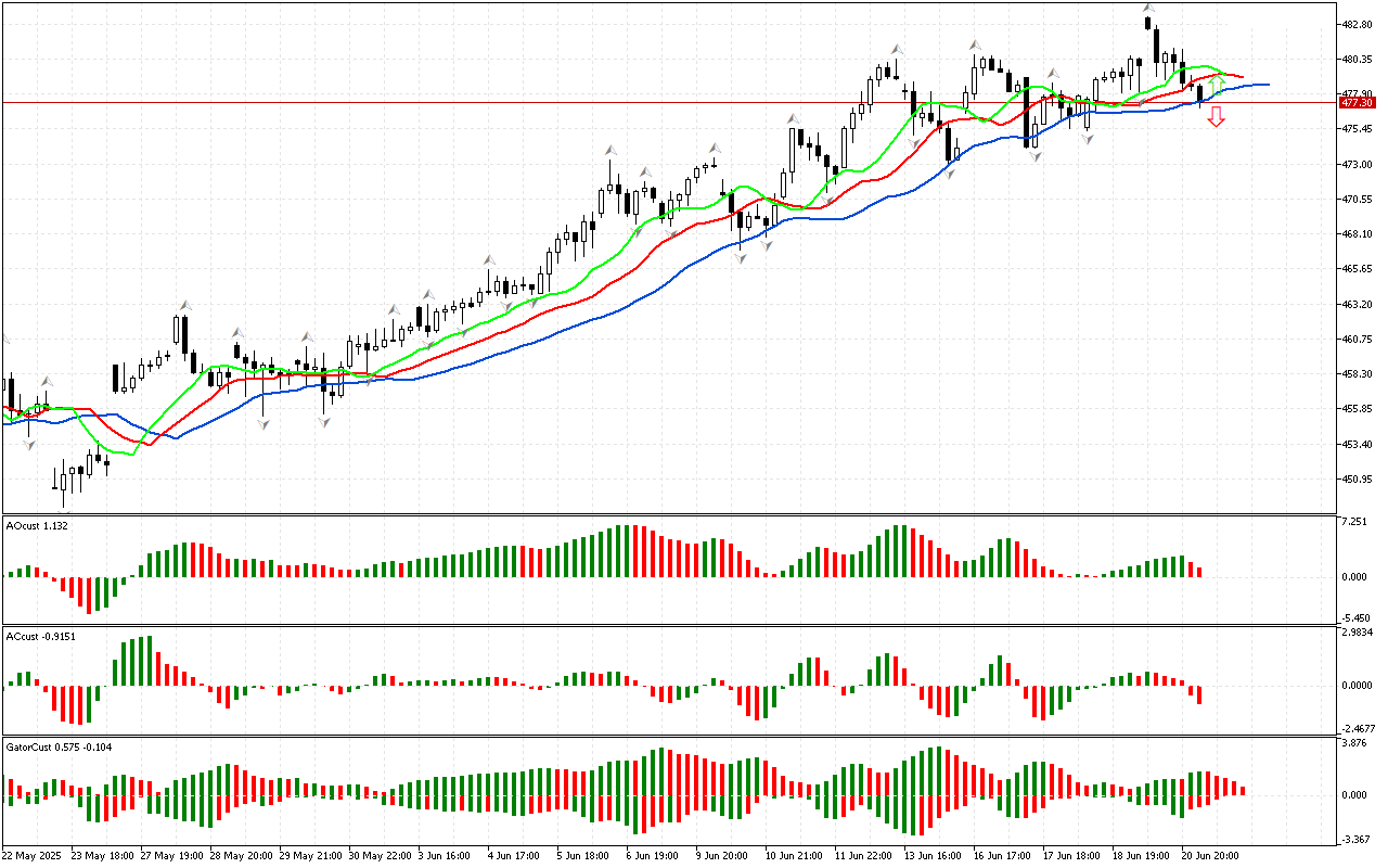 Várias colunas vermelhas foram formadas no indicador Gator. Este é um sinal que pode indicar o desenvolvimento de um movimento corretivo no futuro próximo.
