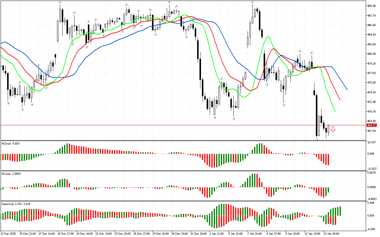 O alligator está ativo e pronto para caçar: suas linhas estão dispostas em uma ordem típica para o desenvolvimento de um movimento de baixa.