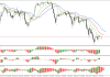 The green bars have been formed above the green line on the Accelerator Oscillator indicator. It signals either a correction or a trend movement change. It indicates the market’s losing energy to continue moving in southern direction. However, as long as the price remains below the Alligator’s red line, the southern movement remains prevalent.
