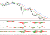 No indicador AC, há uma série de barras vermelhas acima da linha zero. Esse é um sinal negativo para o mercado. Indica uma diminuição na energia do movimento para a direção de alta. No entanto, o movimento de alta permanece prevalente enquanto o preço estiver acima da linha vermelha do Alligator.