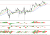 Os indicadores AC e AO estão na zona vermelha, o que indica que há força e energia para continuar o movimento de baixa.