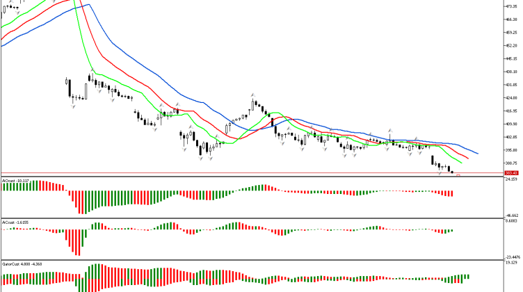 A revisão começa com a análise da primeira dimensão do mercado. O preço caiu abaixo do fractal inferior, localizado fora da boca do Alligator. Portanto, a fase é definida como…