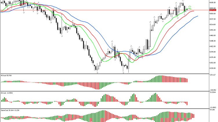 De acordo com S&P 500, a fase é definida como ascendente, já que o preço subiu acima do fractal superior. Agora, podemos examinar os sinais de outras dimensões do mercado…