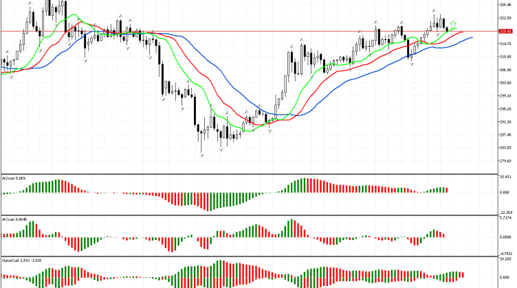 De acordo com S&P 500, a fase é definida como ascendente, já que o preço subiu acima do fractal superior. Agora, podemos examinar os sinais de outras dimensões do mercado…