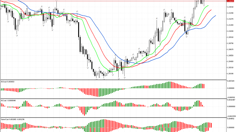 O preço subiu acima do fractal superior, localizado acima da boca do Alligator no gráfico. Com base nesse sinal, definimos a fase como sendo de alta e podemos examinar as…
