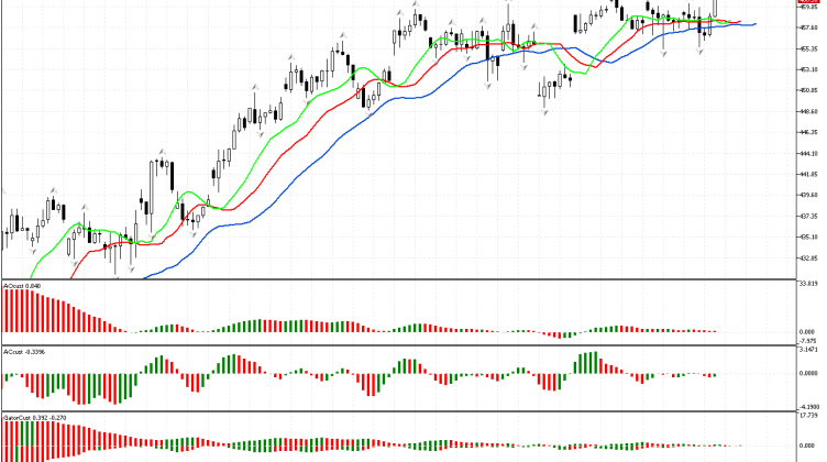 De acordo com S&P 500, a fase é definida como ascendente, já que o preço subiu acima do fractal superior. Agora, podemos examinar os sinais de outras dimensões do mercado…