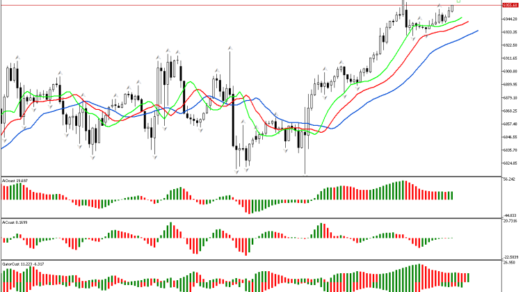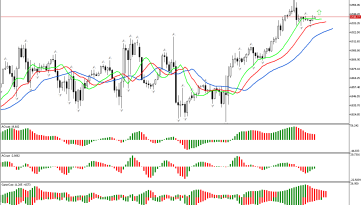 De acordo com S&P 500, a fase é definida como ascendente, já que o preço subiu acima do fractal superior. Agora, podemos examinar os sinais de outras dimensões do mercado…