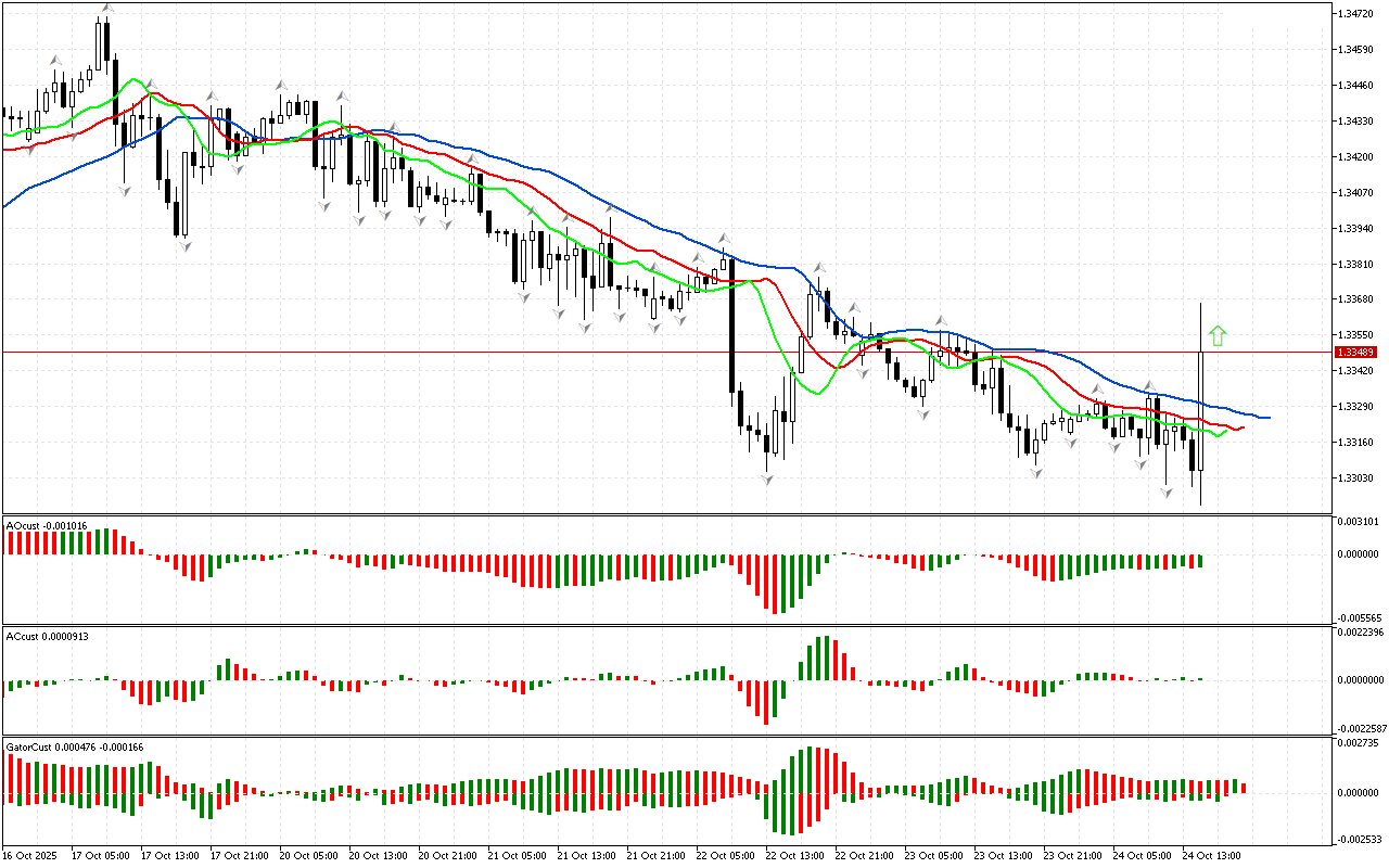 Ταυτόχρονα, οι ενδείξεις AC και AO έγιναν κόκκινες. Αυτό σηματοδοτεί ότι η δύναμη και η ενέργεια της ανοδικής ώθησης έχουν επιβράδυνση. Αυτό μπορεί να οδηγήσει στην ανάπτυξη βαθύτερης διόρθωσης ή αλλαγής τάσης. Ωστόσο, το σενάριο της βόρειας κίνησης παραμένει κυρίαρχο όσο η τιμή παραμένει πάνω από την κόκκινη γραμμή Alligator.