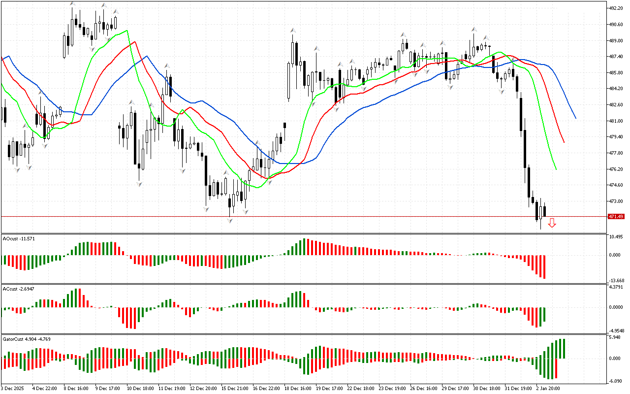The histogram of the Gator indicator has not formed a clear signal yet. The color of the histograms changes, indicating a change in market phase.