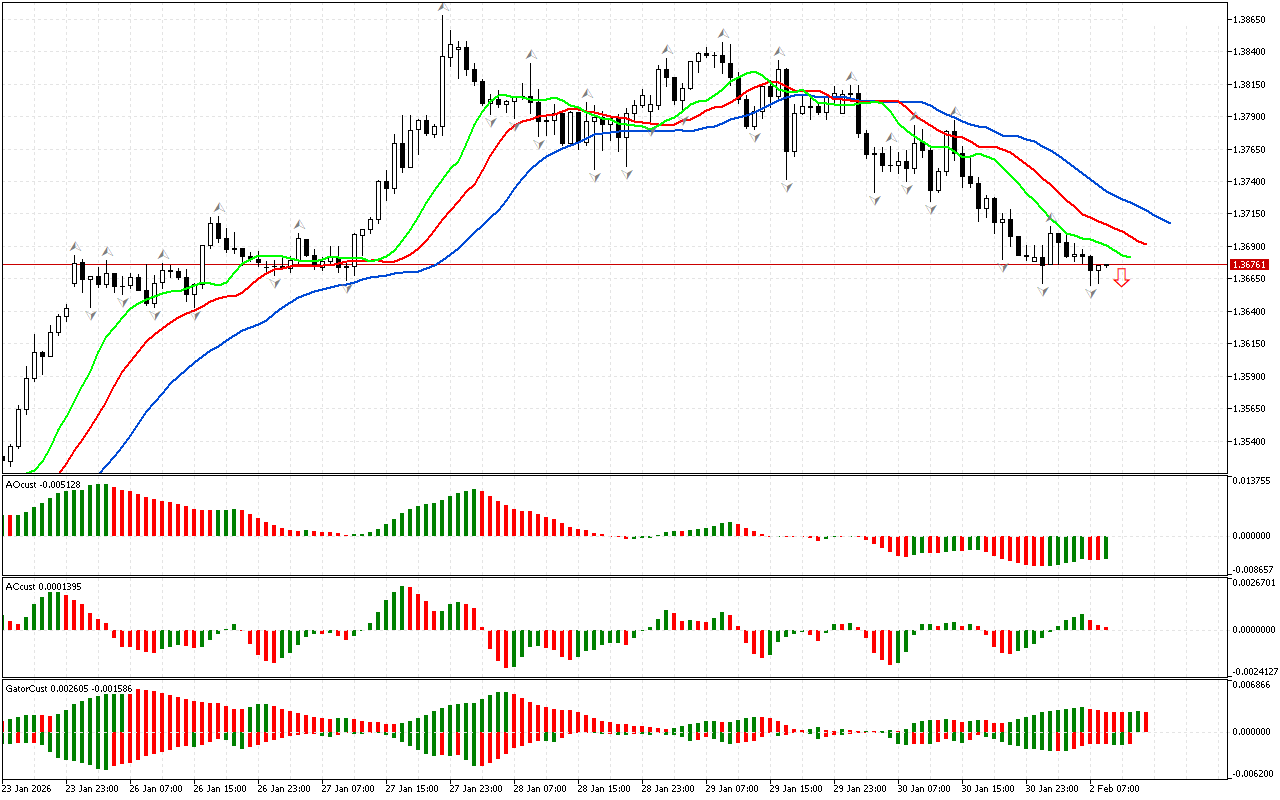 The histogram of the Gator indicator has not formed a clear signal yet. The color of the histograms changes, indicating a change in market phase.