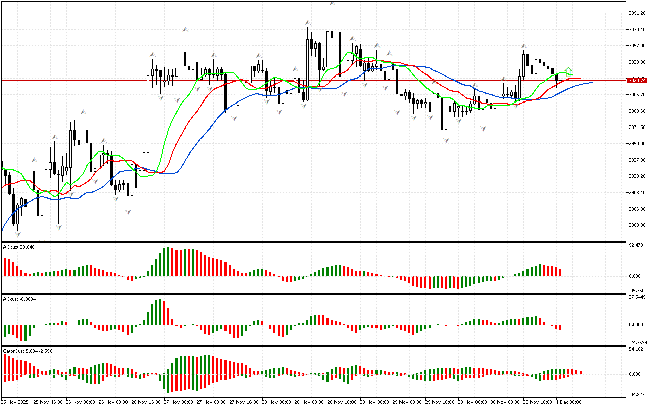 Pada saat yang sama, indikator AC dan AO berubah menjadi merah. Perubahan ini menandakan bahwa kekuatan dan energi dorongan ke atas mengalami perlambatan. Hal ini dapat menyebabkan perkembangan koreksi yang lebih dalam atau perubahan tren. Namun, skenario pergerakan ke utara tetap berlaku selama harga tetap berada di atas garis merah Alligator.