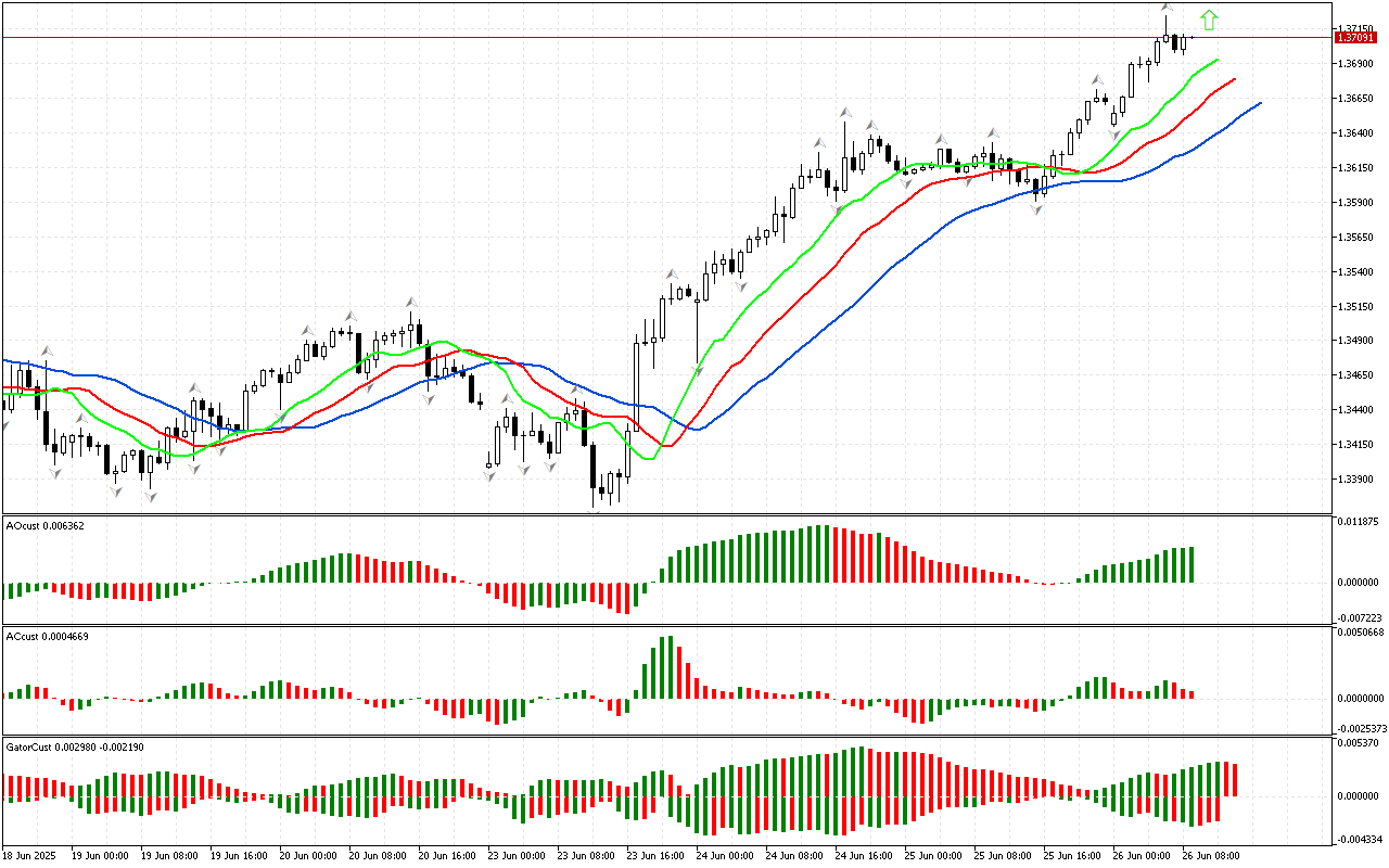 Indikator Alligator mengonfirmasi sentimen positif pasar. Mulut Alligator terbuka dan dia lapar. Dengan latar belakang ini, harga mungkin akan terus naik.