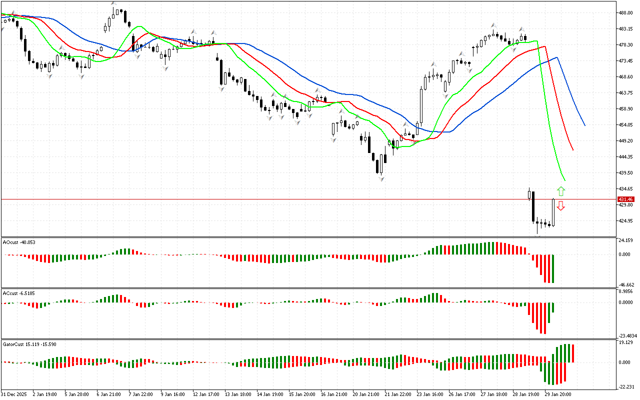 Alligator tetap aktif, menunjukkan kemungkinan kelanjutan pergerakan di pasar.