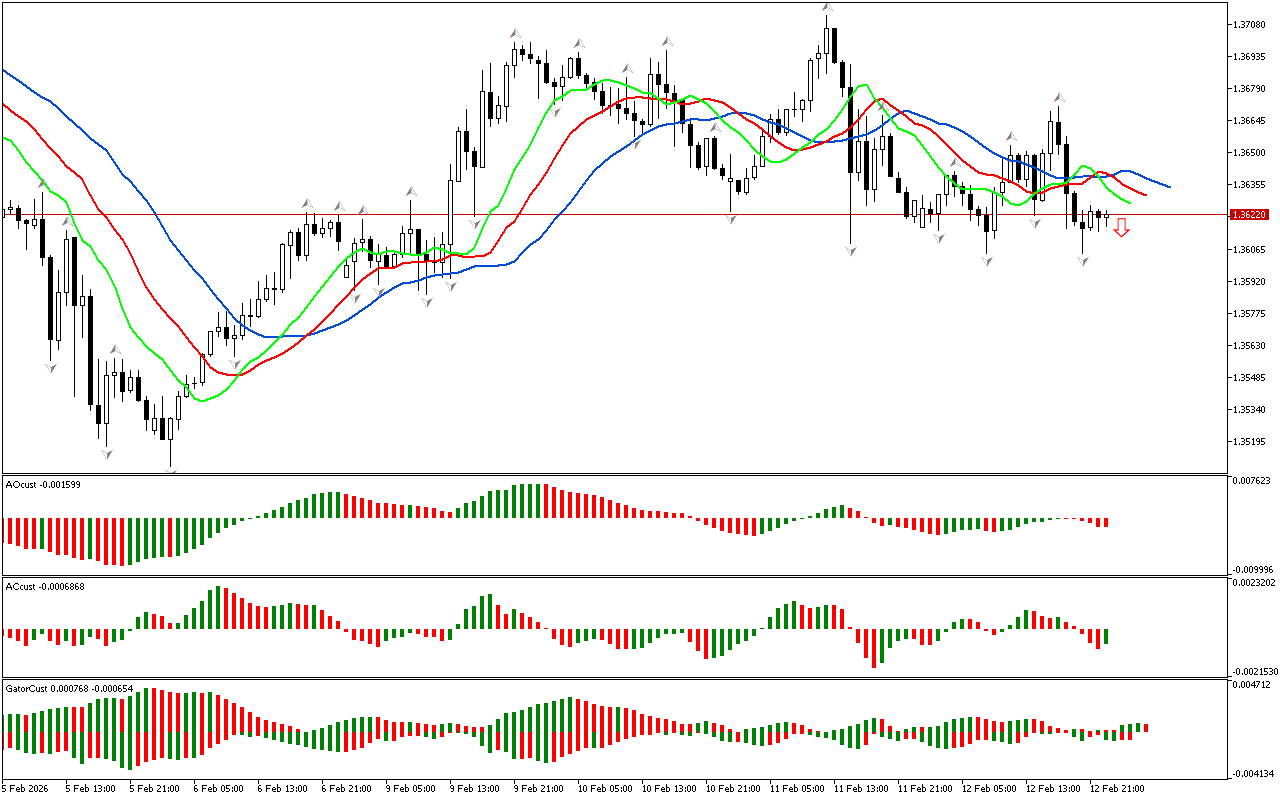 Warna histogram indikator Gator berubah, jadi indikator ini belum membentuk sinyal yang jelas.