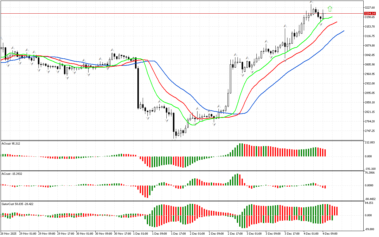 アリゲーター指標は市場のポジティブなムードを裏付けています。アリゲーターの口は開いています。お腹が空いているのです。このような背景から、価格は上昇し続けるかもしれません。