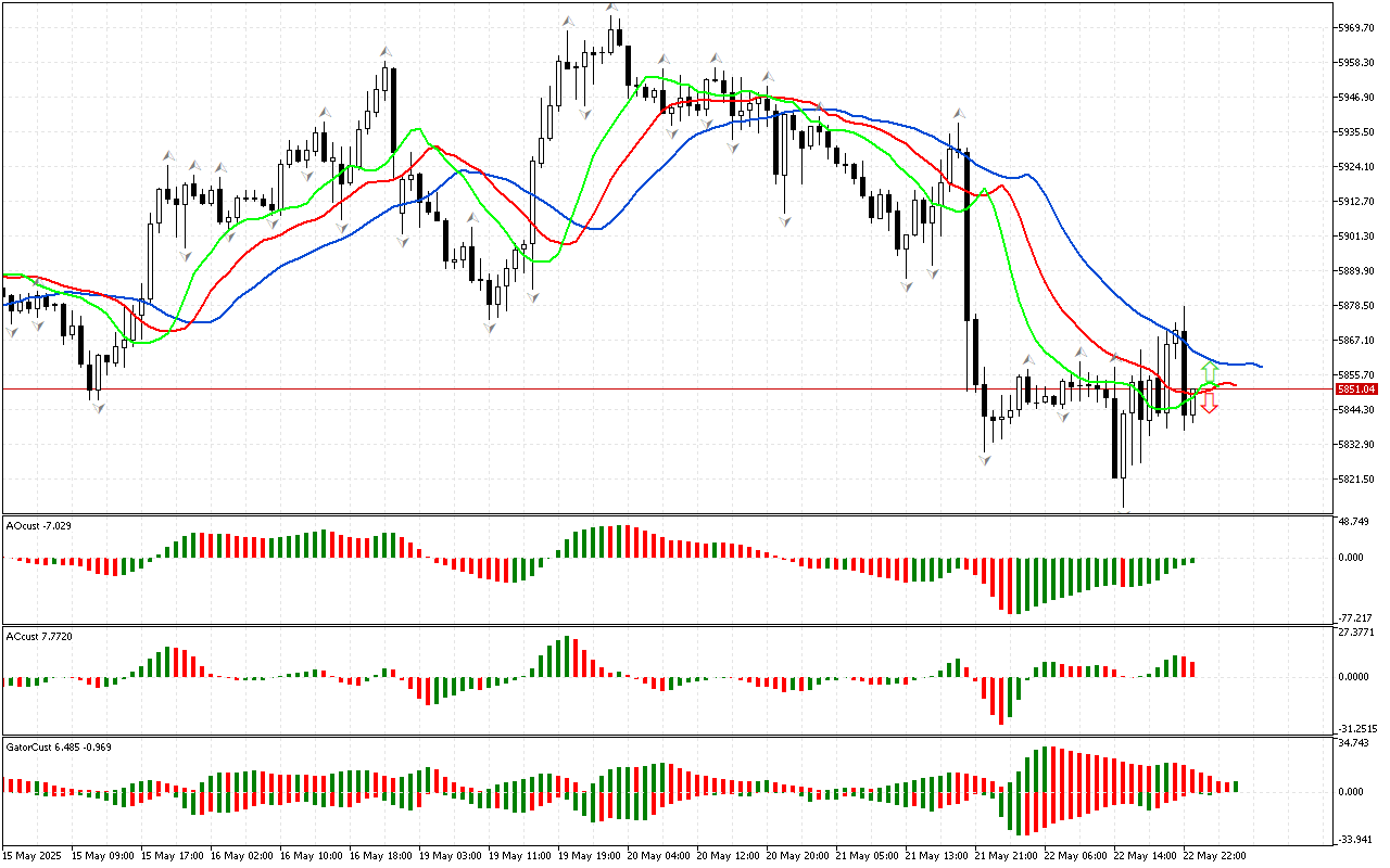 S&P 500 H1: カオス理論に基づくアジアセッションの予測 23.5.2025