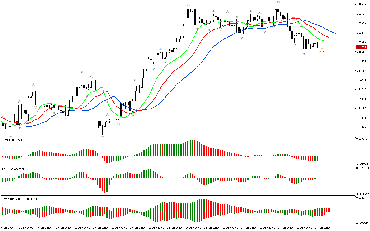 Gator インジケーターのヒストグラムはまだ明確なシグナルを形成していません。ヒストグラムの色が変化し、市場フェーズの変化を示します。