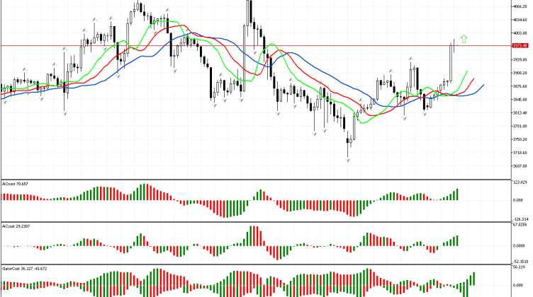 시장의 첫 번째 단계에 대한 분석으로 검토가 시작됩니다. 가격은 차트의 상단 프랙탈 위로 상승한 것으로 나타났습니다. 이는 단계의 방향을 북쪽으로 결정합니다. 이 신호는 상향 움직임의 시작 가능성을 나타냅니다.악어 선은 또한…