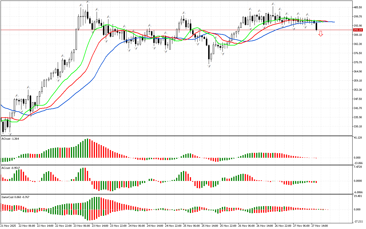 Awesome Oscillator 지표가 0점 이하로 통합되었습니다.