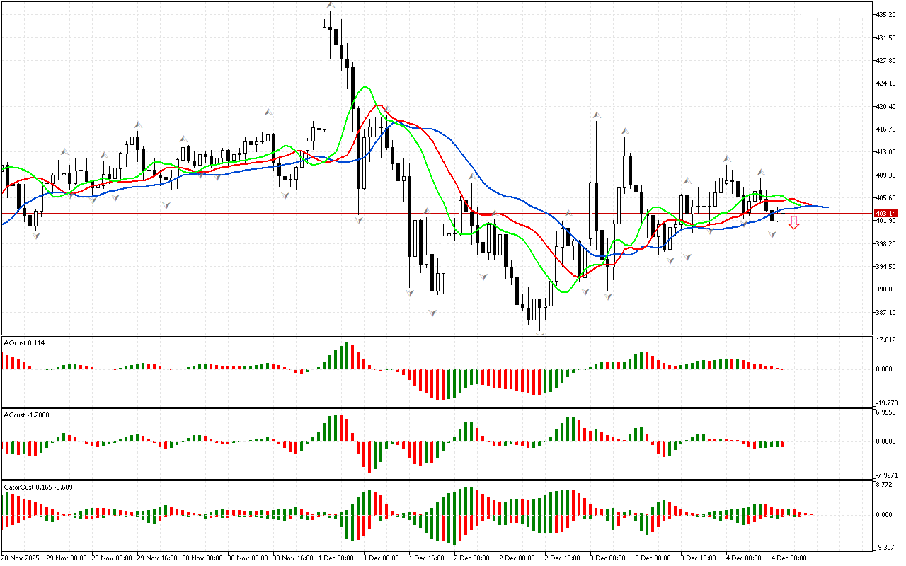 AC 표시기에서 마지막 몇 개의 막대가 녹색이라는 점도 주목할 가치가 있습니다. 이 경우 히스토그램은 0 표시 아래에 있습니다. 이 신호는 수정 진행과 움직임 반전을 모두 나타낼 수 있습니다. 그러나 가격이 앨리게이터의 레드 라인 아래에 유지되는 한 하락 움직임은 여전히 우선순위로 남아 있습니다.