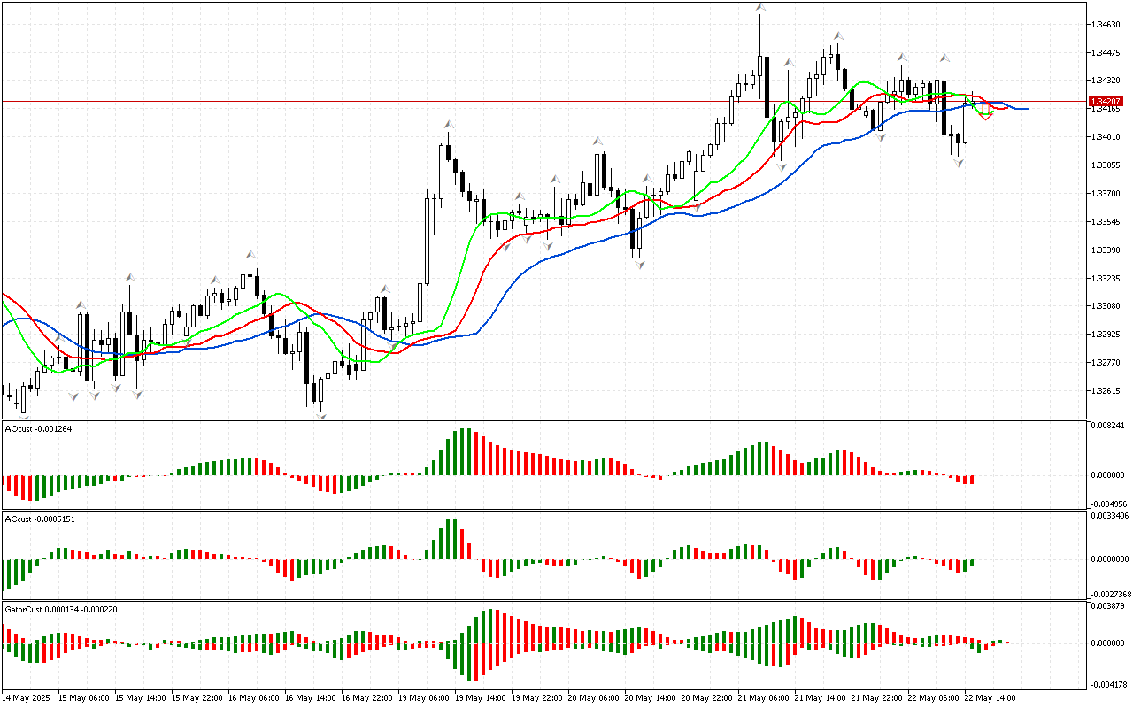 Gator 지표의 히스토그램은 아직 명확한 신호를 형성하지 않았습니다. 히스토그램의 색상이 바뀌면서 시장 단계의 변화를 나타냅니다.