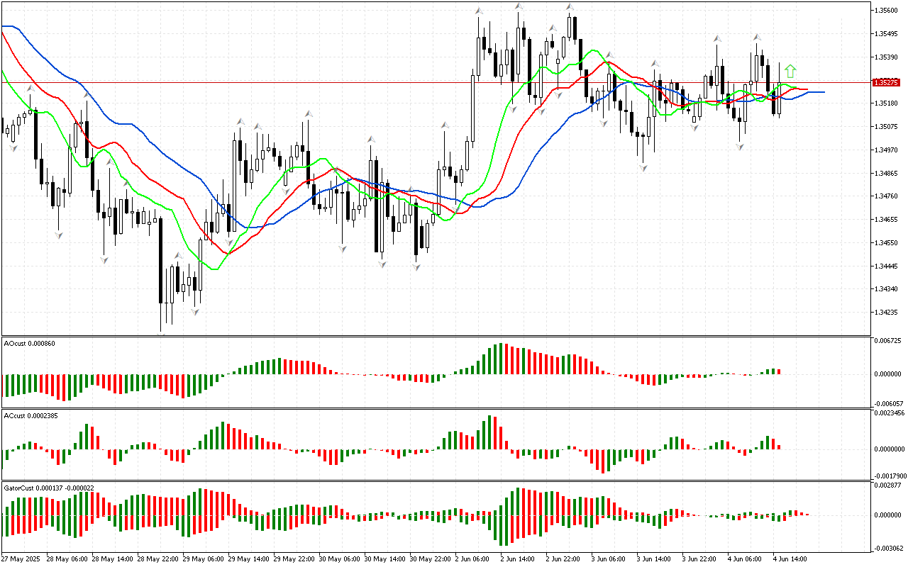동시에 Awesome Oscillator 히스토그램은 현재 0선 위에 있습니다.