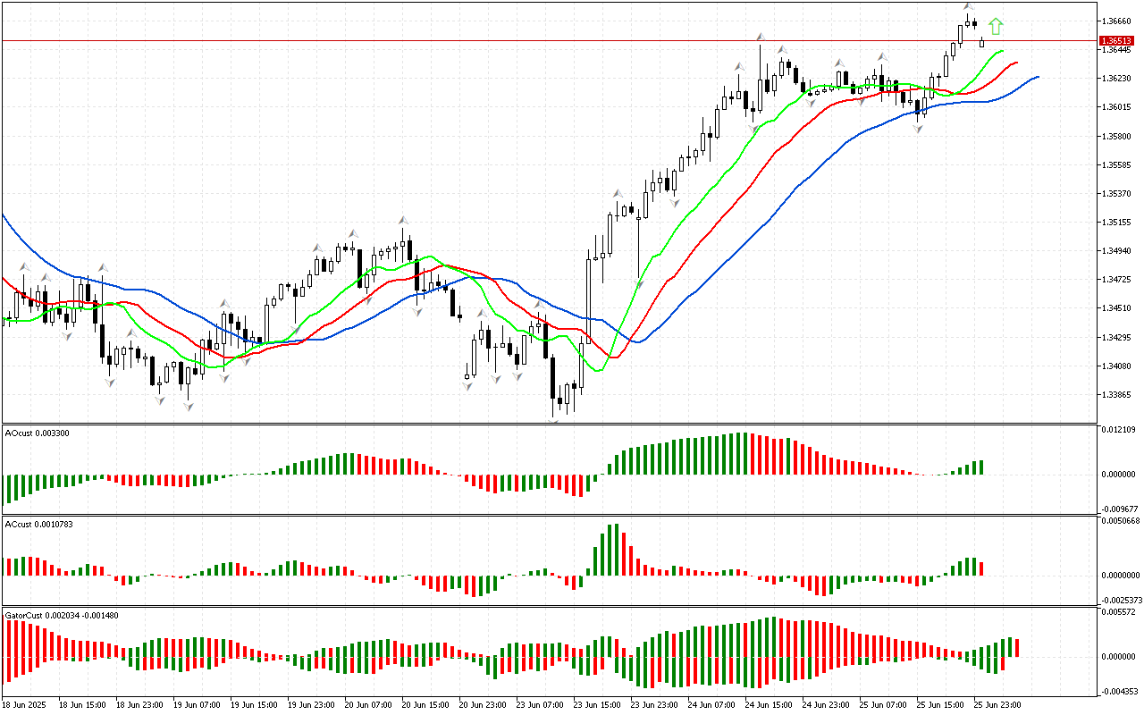 동시에 Awesome Oscillator 히스토그램은 현재 0선 위에 있습니다.