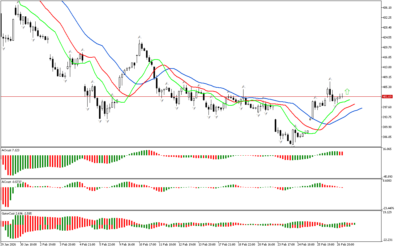 동시에 Awesome Oscillator 히스토그램은 현재 0선 위에 있습니다.
