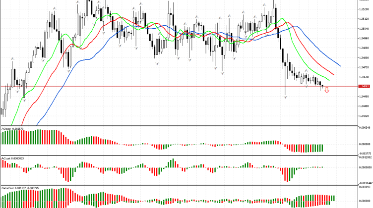 В начале обзора проводим анализ первого измерения рынка. Цена пробила нижний фрактал, расположенный за пределами пасти Аллигатора, поэтому пространство фазы определено как южное. Приоритетным является движение вниз. Чтобы оценить силы…