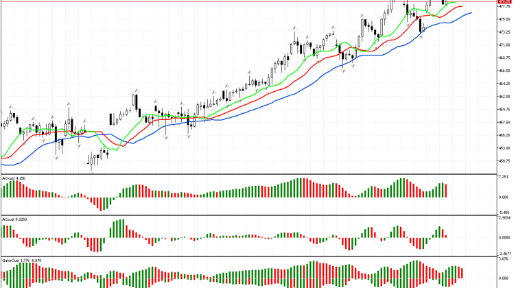 По Microsoft пространство фазы определено как северное, так как выбит фрактал на покупку. Теперь мы можем рассматривать сигналы других измерений рынка в рамках стратегии Билла Вильямса.Индикатор Аллигатор подтверждает позитивное настроение…