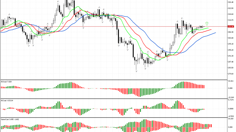 На графике выбит верхний фрактал, расположенный над пастью Аллигатора. Благодаря этому сигналу мы определяем пространство фазы как северное и можем рассматривать следующие 3 измерения рынка.Индикатор Аллигатор подтверждает позитивное настроение рынка.…