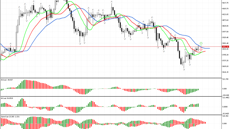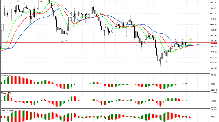 В начале обзора проводим анализ первого измерения рынка. Цена пробила нижний фрактал, расположенный за пределами пасти Аллигатора, поэтому пространство фазы определено как южное. Приоритетным является движение вниз. Чтобы оценить силы…