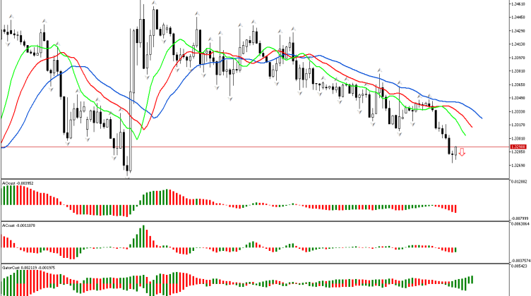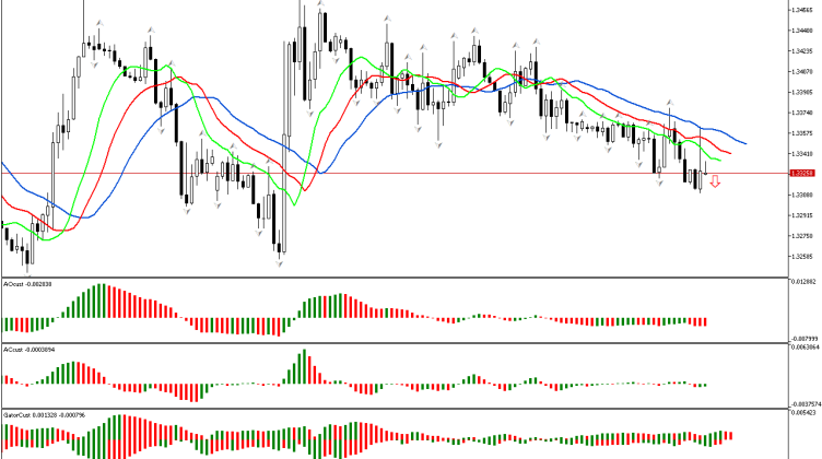 В начале обзора проводим анализ первого измерения рынка. Цена пробила нижний фрактал, расположенный за пределами пасти Аллигатора, поэтому пространство фазы определено как южное. Приоритетным является движение вниз. Чтобы оценить силы…