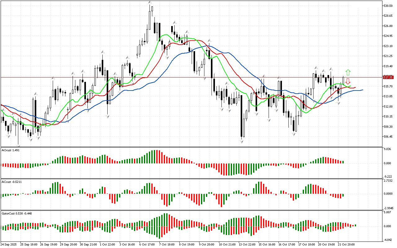 Несмотря на неопределенность фазового пространства и невозможность принятия дальнейших торговых решений на данный момент, пасть Аллигатора остается открытой, что указывает на сохраняющийся потенциал рыночных движений.