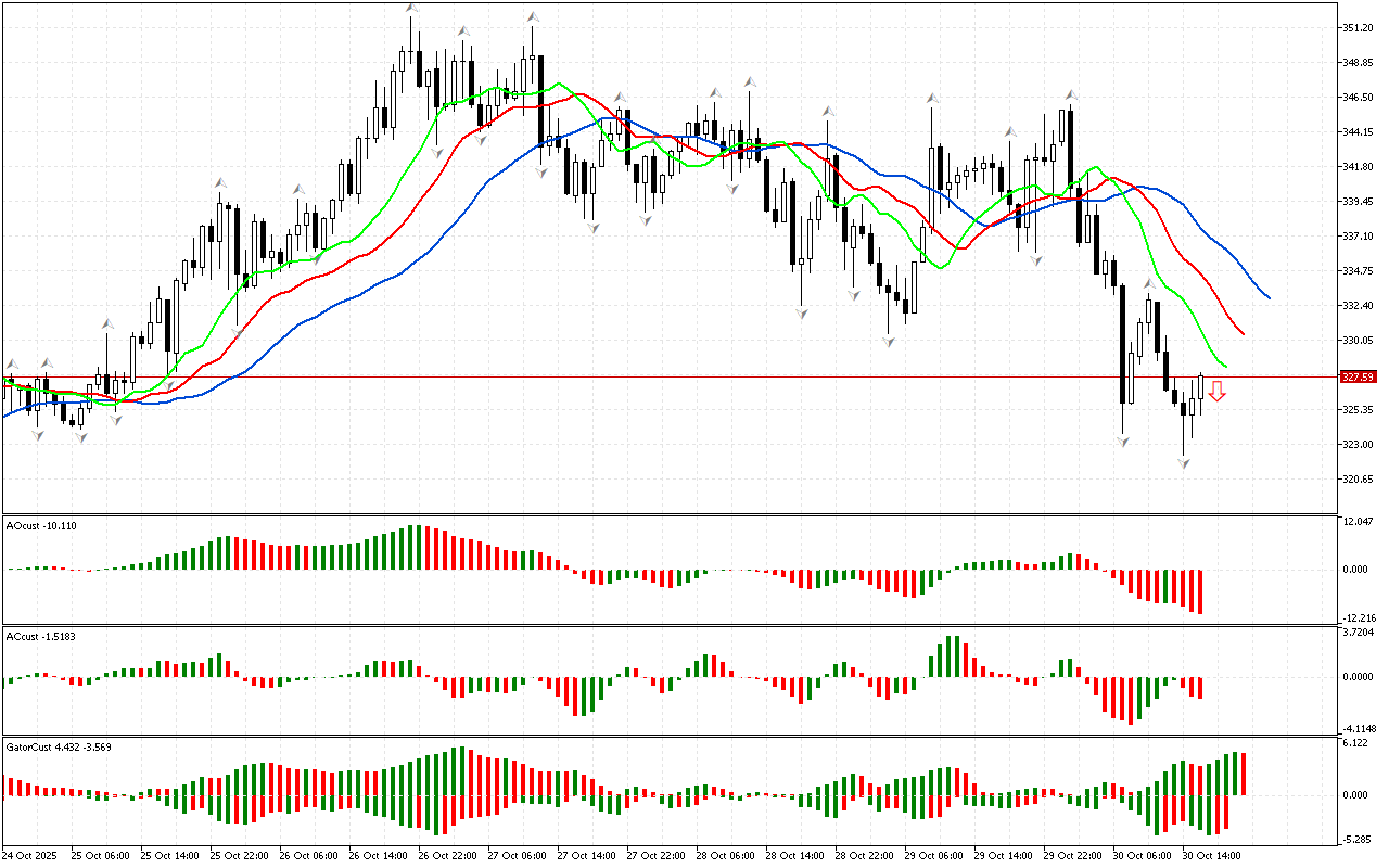 Индикатор Awesome Oscillator закрепился ниже нулевой отметки.