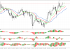 На индикаторе AC наблюдается серия красных баров выше нулевой линии. Это негативный сигнал для рынка. Он указывает на снижение энергии движения на север. Тем не менее, движение вверх остается приоритетным, пока цена удерживается выше красной линии Аллигатора.