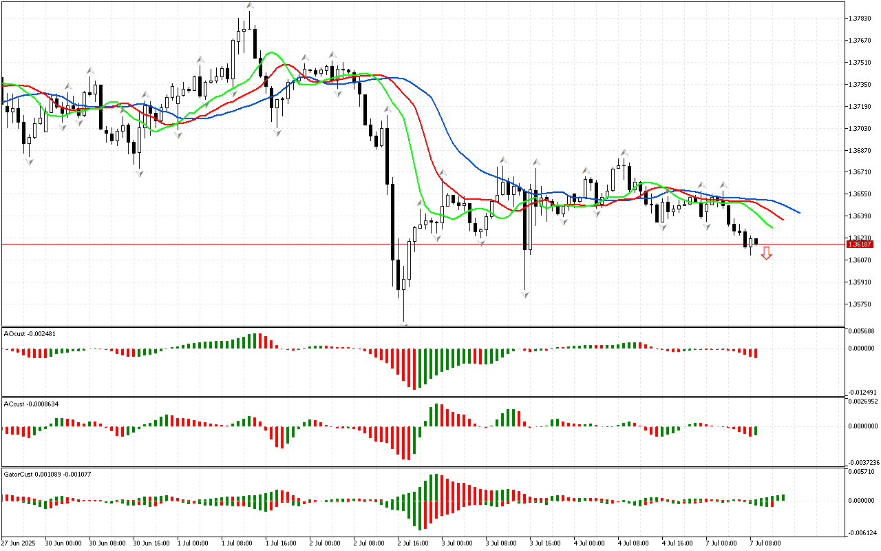 Сигналы индикаторов AC и AO указывают на то, что рынок обладает достаточной силой и энергией для дальнейшего снижения котировок.