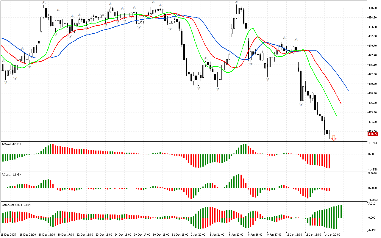 Индикаторы AC и AO находятся в красной зоне, что говорит о наличии силы и энергии для продолжения движения вниз.