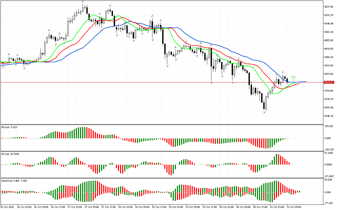 ตัวบ่งชี้ AC มีแถบสีแดงหลายแถบอยู่เหนือเส้นศูนย์ ซึ่งเป็นสัญญาณเชิงลบสำหรับตลาด โดยบ่งบอกว่าพลังงานของการเคลื่อนไหวในทิศทางเหนือลดลง อย่างไรก็ตาม การเคลื่อนไหวขาขึ้นยังคงเกิดขึ้นอย่างต่อเนื่องตราบใดที่ราคายังคงอยู่เหนือเส้นจระเข้สีแดง
