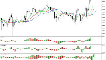 Vẫn còn sự không chắc chắn liên quan đến S&P 500. Giá không giảm xuống dưới hoặc tăng lên trên bất kỳ fractal nào. Trong tình huống này, nên kiềm chế các hành động tích cực trên thị trường và chờ đợi các tín hiệu mới xuất hiện. Việc giá tăng lên trên fractal trên hoặc giảm xuống dưới fractal dưới sẽ giúp xác định hướng thịnh hành.
