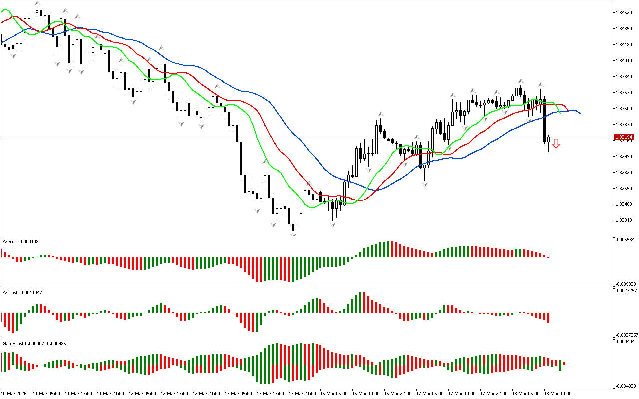 Biểu đồ histogram của chỉ báo Gator chưa hình thành tín hiệu rõ ràng. Màu sắc của các cột histogram thay đổi, cho thấy sự chuyển pha của thị trường.